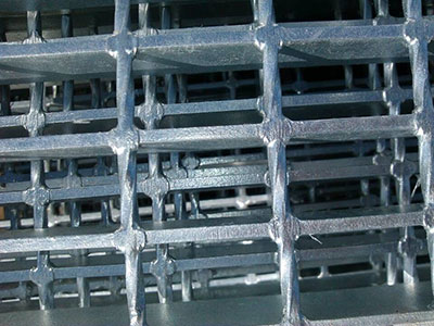 热镀锌钢格板是由负载扁钢和横杆按一定间距经纬排列,在高压电阻焊机上焊接而成原板,经切割、切口、开孔、包边等工序深加工而成客户要求的成品。
